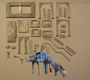 Our model is loosely based on that at the Port of Tyne coal sidings and is elevated to provide a panoramic sight height of 7.5m (25ft), ideal in a container yard or where elevated conveyor equipment may exist. It is produced as a white-metal kit and includes stair-case, support framework and building. Wire/rod is also included for handrails and a small Electricity Supply Box to position below the structure at ground level all making a neat and interesting structure.
