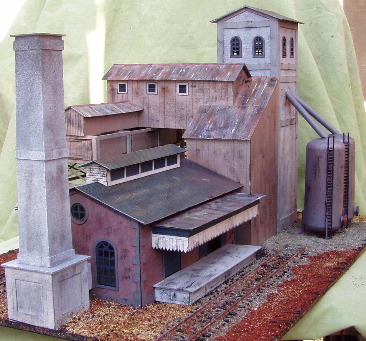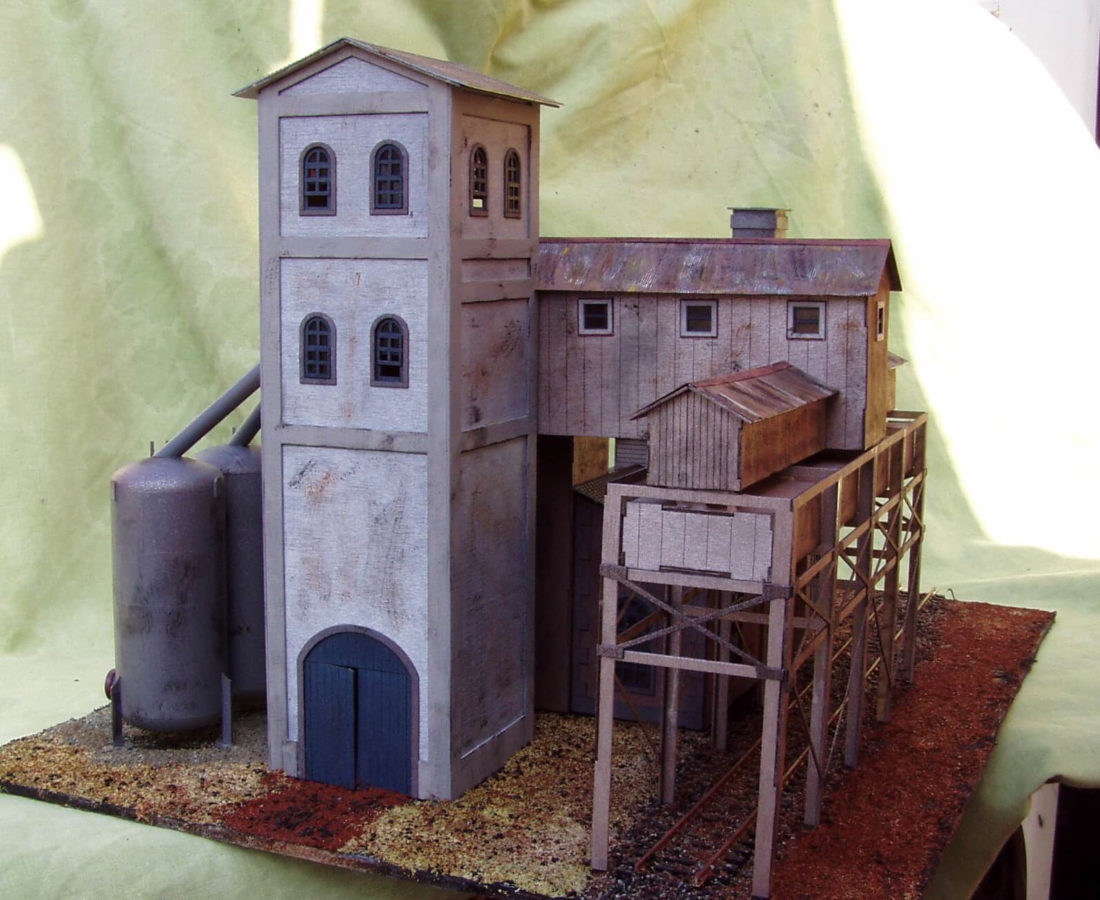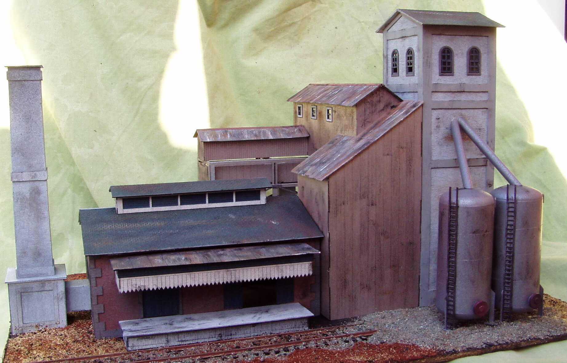 Although this model is labelled as a clay works there are a number of other industries (for example cement) which use a similar infrastructure. In essence the model portrays raw materials in (on one siding) processing taking part 'inside' the structure and then goods out through unloading chutes above the second siding.