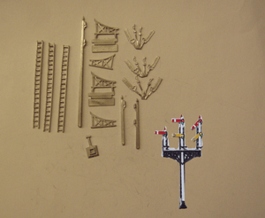 Pack contains parts to build one signal, will build right or left hand version. Includes ladders and coloured jewels for lenses. Requires assembly and painting.