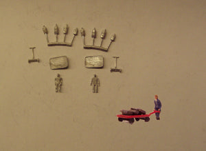 Pack contains two trolleys, eight mailbags and two porters. Requires assembly and painting.