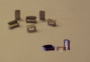 C52 (1) Table, settee, wardrobe (2 of each) - N GAUGE -