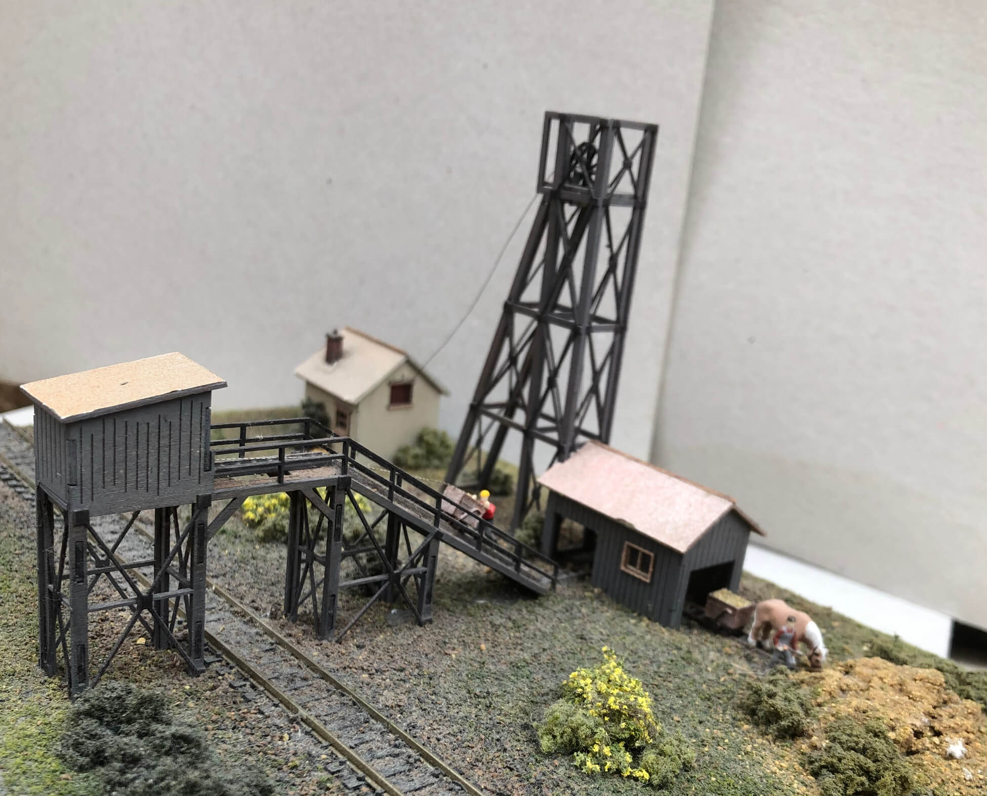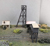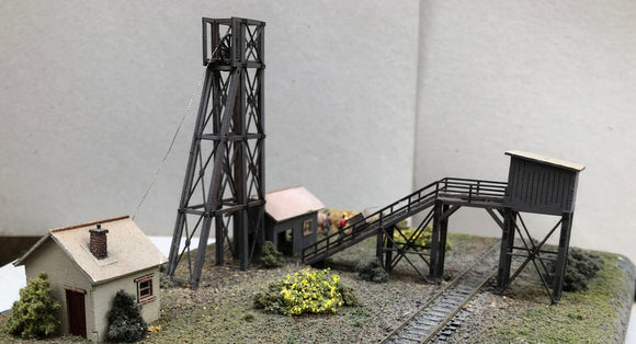 The kit represents a composite of several mining operations located in United Kingdom. These mines varied in minerals that they produced ranging from coal to fireclay, lead, fluorspar and barites. The structures modeled in this kit were inspired by those located at the Bullhouse, Groverake, Hope Level and Osmond Croft mines in Northern England. The Head Gear of the kit simulates rock being pulled up from the Mine Shaft using the Winding-Engine. The valuable ore is then pushed by men or pulled by horses through the Tippler House and then pulled up the Gantry by the Haulage-Engine and dumped into a waiting 5-Plank Wagon. The waste rock is routed over the 2-Foot Gauge Mine Track and then dumped into the Spoil Tip. Note that there are two different configurations for installing these structures on your layout. Both configurations are included in the instructions. The one shown in the pictures has a footprint of 160mm x 190mm (the alternate design is 45mm x 225mm)